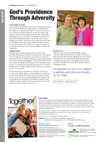 Issue 52 | Nov/Dec 2021 | £6 We do trust you enjoy receiving and reading Together magazine and find it interesting and informative. As a valued twelve core doctrines and how they engage and transform the human heart and mind.